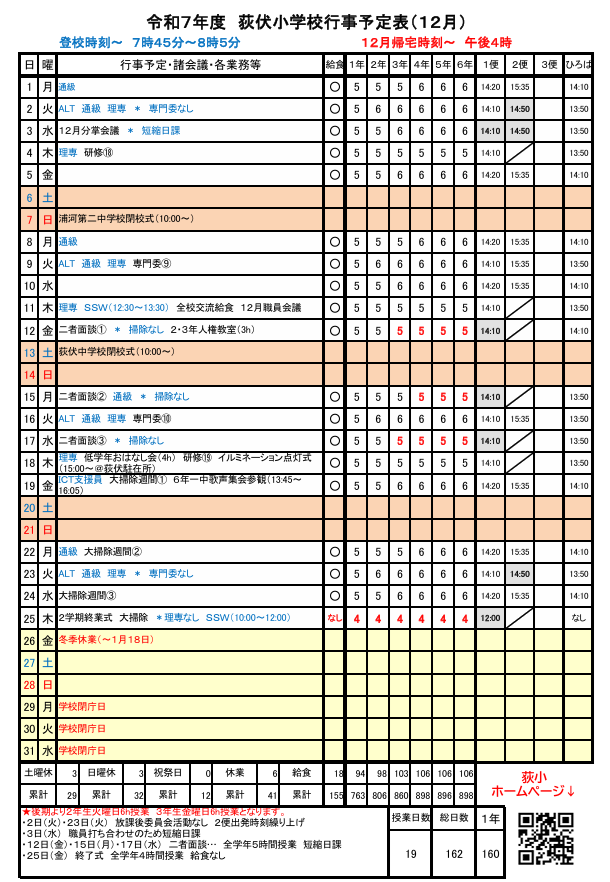 学校カレンダー
