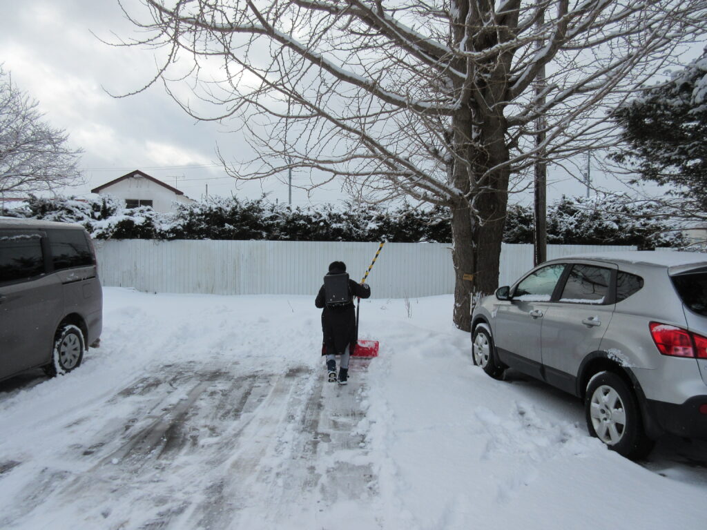 学校玄関前除雪作業