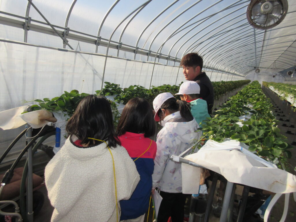 11月18日(火)3年生社会科見学を行いました。今回は、浦河産のいちごについて学んで来ました。最初に、佐藤農園さんに見学に行きました。朝3時から4時に仕事を始め、9時には選果場に運んでいくこと。夏時期は、45日間で食べれるイチゴになる。今の時期は、60日間かけて食べれるイチゴになること等、教えていただきました。また、実際にイチゴの収穫体験もさせていただきました。始めは慣れませんでしたが、何回かやるうちに上手にとることができるようになりました。収穫したイチゴは試食させていただき、更にお土産に持たせてくれました。甘く瑞々しくてとても美味しいイチゴでした。お忙しい中、見学させていただきありがとうございました。