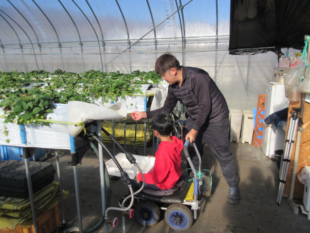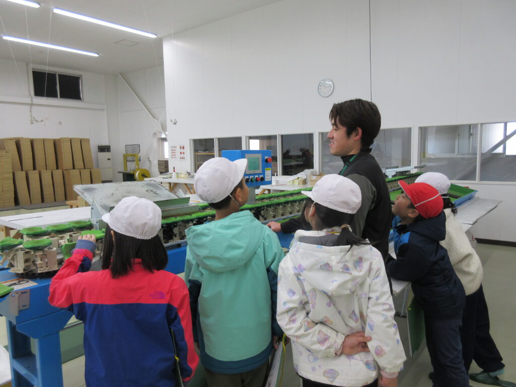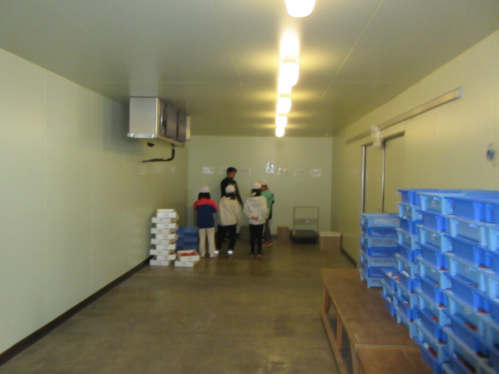 次に、いちご選果場に見学に行きました。1年間で20トンものいちごを選果しているそうです。いちごの重さや形で選別をしていること。傷がついていないかどうかもしっかりチェックしていることなどを教えていただきました。規格外のいちごを冷凍して出荷していることも教えてもらいました。冷凍されたいちごはジャムなど加工用として使われるそうです。フードロスをなくす大事な取組だと思いました。最後に規格外のいちごの試食もさせていただきました。とても美味しかったです。お忙しい中、見学をさせていただきありがとうございました。